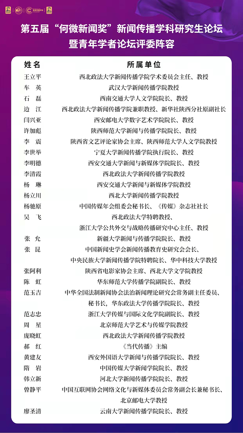 第五届“何微新闻奖”新闻传播学科研究生论坛暨青年学者论坛评委名单