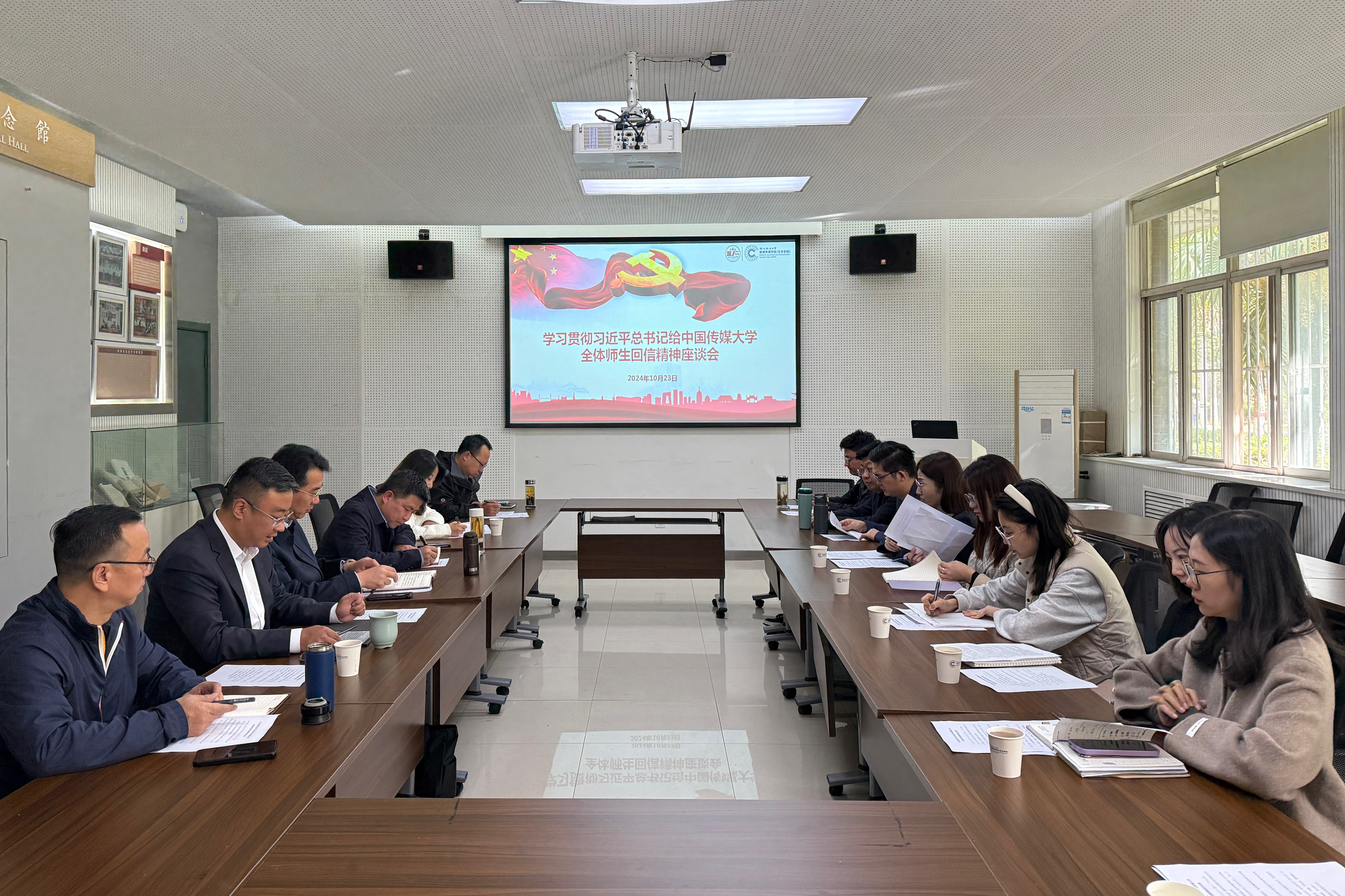 10月23日下午,我校在新闻传播学院(艺术学院)召开学习贯彻习近平总书记给中国传媒大学全体师生回信精神座谈会。校党委副书记张军政,校党委委员、宣传部部长燕福民出席会议。学院党政班子成员、全体党支部书记和师生代表参会。
