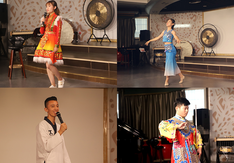 蒙古族学生刘怡婷的独唱《乌兰巴托的夜晚》唱出宽广草原上,各民族休戚与共的和谐幸福。田诗琳同学的独舞《傣寨情》舞出各族人民相依相存、共建美丽家园的美好愿景。李赵珑同学现场演绎京剧选段《霸王别姬》精彩纷呈。 少数民族专职辅导员伊力亚斯带来劲爆的跆拳道表演。