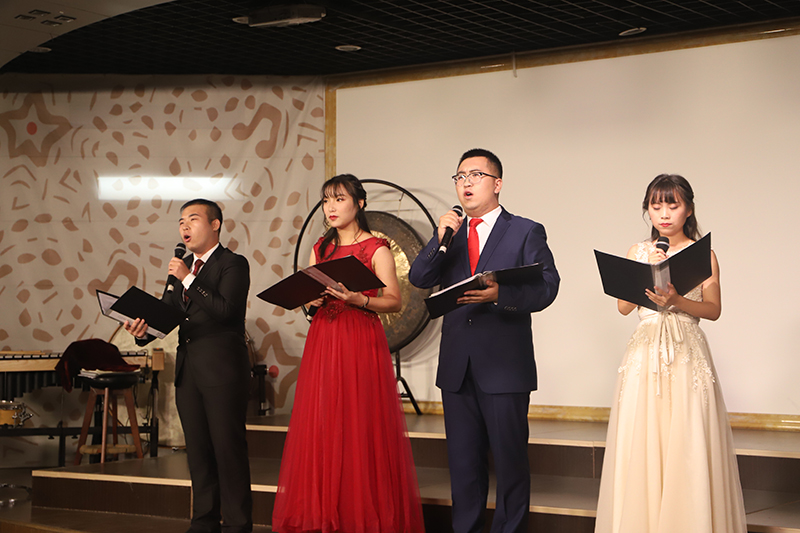 小合唱《我和我的祖国》将联欢会引入高潮,全场观众加入演唱,以西法大师生对祖国豪迈的祝福之情,营造出一片民族大团结、大联欢的繁荣景象。