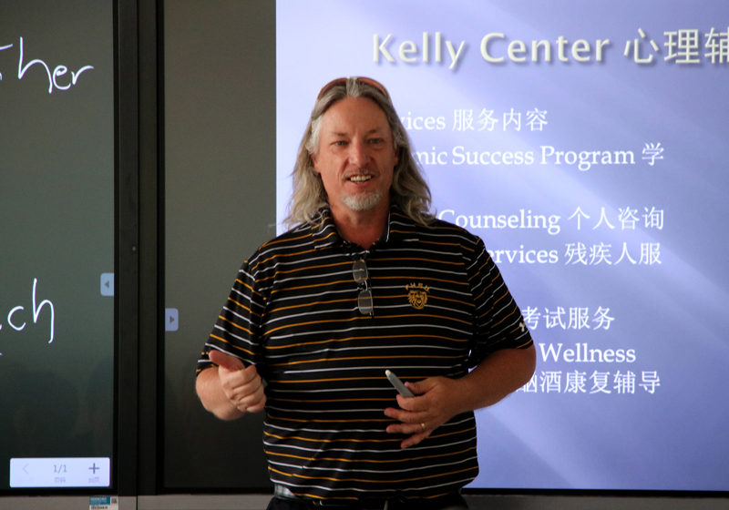 罗伯特•达菲以“一切为了学生:福特海斯州立大学”为题进行了交流分享。他从心理辅导、学业指导、个体咨询、残疾人服务、酗酒和吸毒康复辅导、学生健康辅导六个方面详细介绍了凯丽学生事务中心的工作机制和服务理念,并与我校学工干部就事务中心基本情况、学生危机事件处理、学生吸毒及酒精成瘾的预防教育等问题进行了深度交流。
