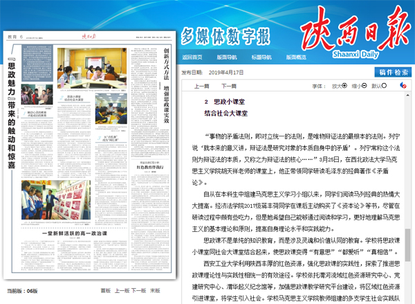 西安培华学院思政部有一个微信公众号“艺术化的思政课”。“将思政课的内容与学生自身专业特长结合起来,真正达到入脑入心,核心主旨就是要让思政课活起来。”西安培华学院思政部主任、陕西省高校教学名师史晓眉说。
