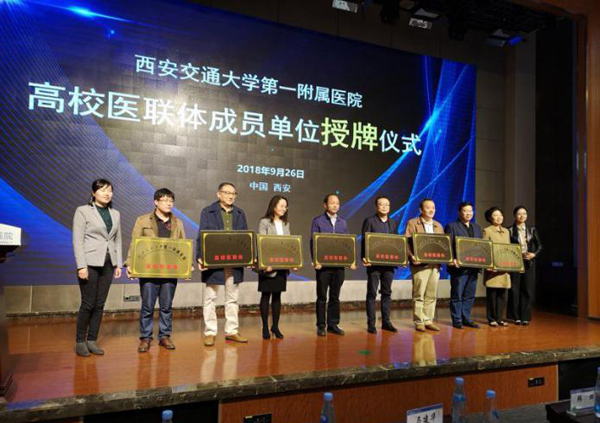 9月26日下午,在西安交通大学第一附属医院举行了”高校医疗联合体成员单位签约仪式”,包括我校在内的十九所高校与西安交通大学第一附属医院签订了高校医联体合作协议。我校校长助理樊铁虎、校门诊部主任翁晓磊、学工部副部长李建梅参加了签约仪式。