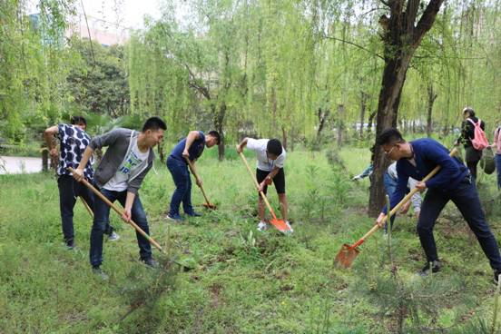 同学们从后勤部门借来了铁锨和锄头,按学院分组行动,男生锄草,女生捡拾垃圾,不到一个小时,大片杂草和垃圾已经被清理干净。实践活动共进行了两个小时,同学们积极动手、热情高涨,圆满完成了义务劳动任务。