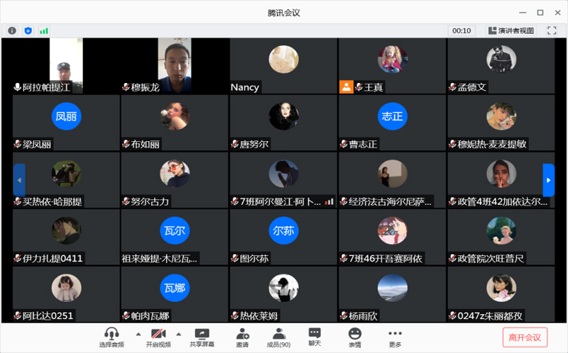 近日,我校党委学工部组织在校少数民族学生代表召开“全民抗疫·致敬英雄”主题座谈会,学工部工作人员、新疆内派教师、少数民族专职辅导员及八十余名少数民族学生代表通过线上形式参加本次座谈会。会议由穆振龙老师主持。