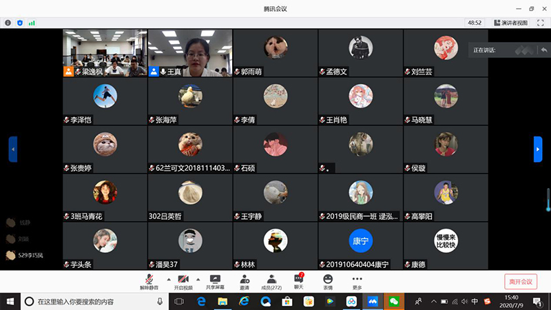 7月9日、10日,由党委学工部主办的我校第十二届优秀学子学风报告会在长安校区成功举办。来自13个学院的27名优秀学子代表分别就考研、就业、司法考试等方面的成功经验通过腾讯会议进行了分享交流,近600名学生在线参会。