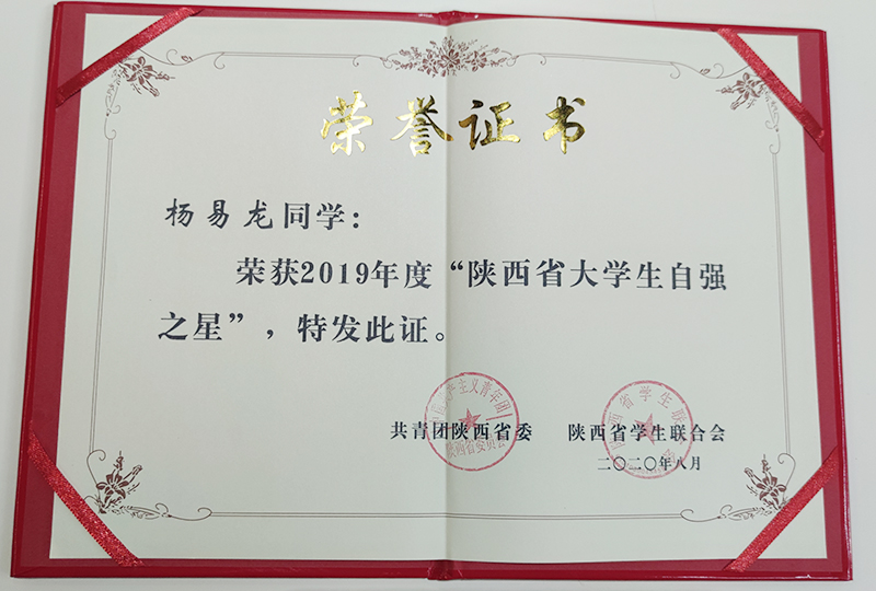 为深入贯彻习近平新时代中国特色社会主义思想,在当代大学生中树立一批可亲、可敬、可信、可学的榜样,进一步培育和践行社会主义核心价值观,按照共青团中央、全国学联通知安排,共青团陕西省委组织开展了2019年度“陕西省大学生自强之星”寻访活动。我校民商法学院石靖扬、经济法学院杨易龙两名同学荣获“陕西省大学生自强之星”的称号,其中石靖扬同学被推荐至共青团中央参加“中国大学生自强之星”评选。