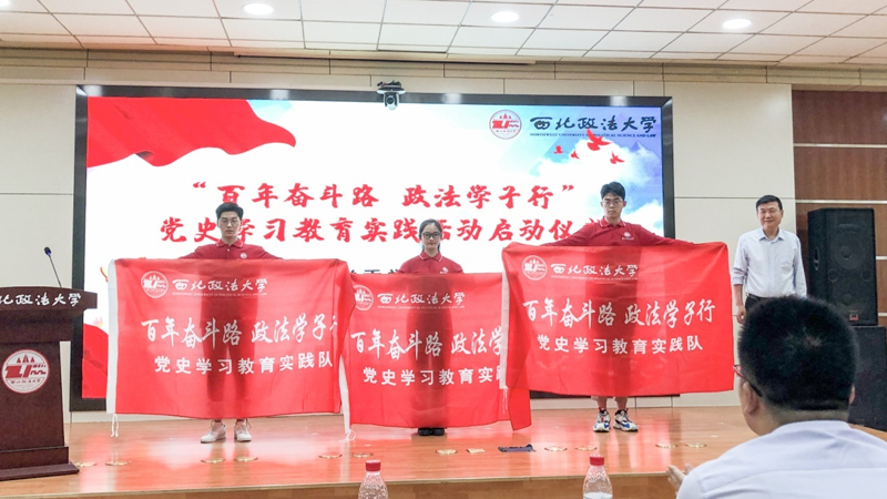 5月20日下午,我校在图书馆一楼报告厅举行“百年奋斗路 政法学子行”全国政法院校学生党史学习教育联合实践活动启动仪式暨党史学习教育专题讲座。校党委副书记郭武军,各学院主管学生工作副书记、全体辅导员、实践队员和学生代表参加,会议由学工部副部长燕楠主持。