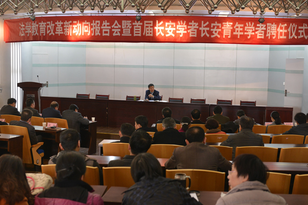 12月16日下午,“法学教育改革新动向”报告会在我校在长安校区校务楼二楼报告厅举行,校长贾宇作主题报告。学校党政领导、校长助理、校学术委员会委员、各学院党政负责人与教学科研副院长、相关职能部门负责人、5个法学院全体教师及5个校级实体研究机构全体教师参加会议。会议由李玉朝副校长主持。