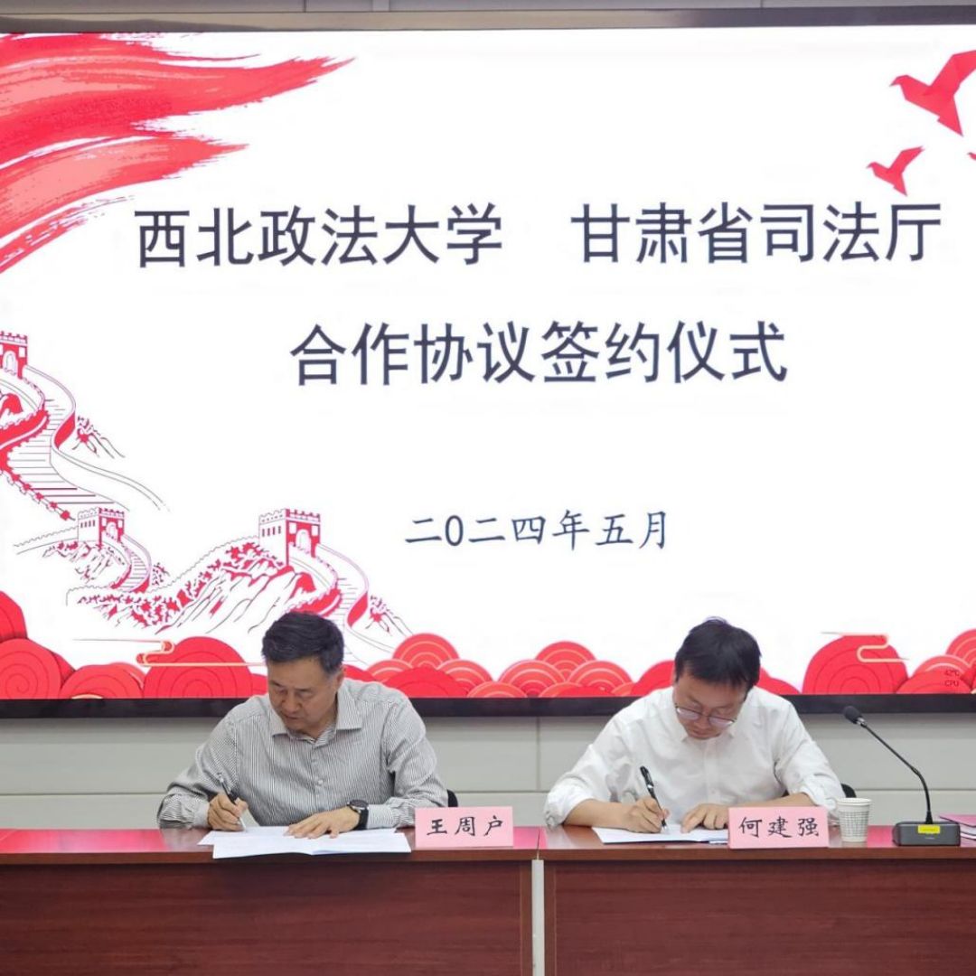 王周户与甘肃省司法厅法治政府研究中心主任何建强代表双方签署合作协议