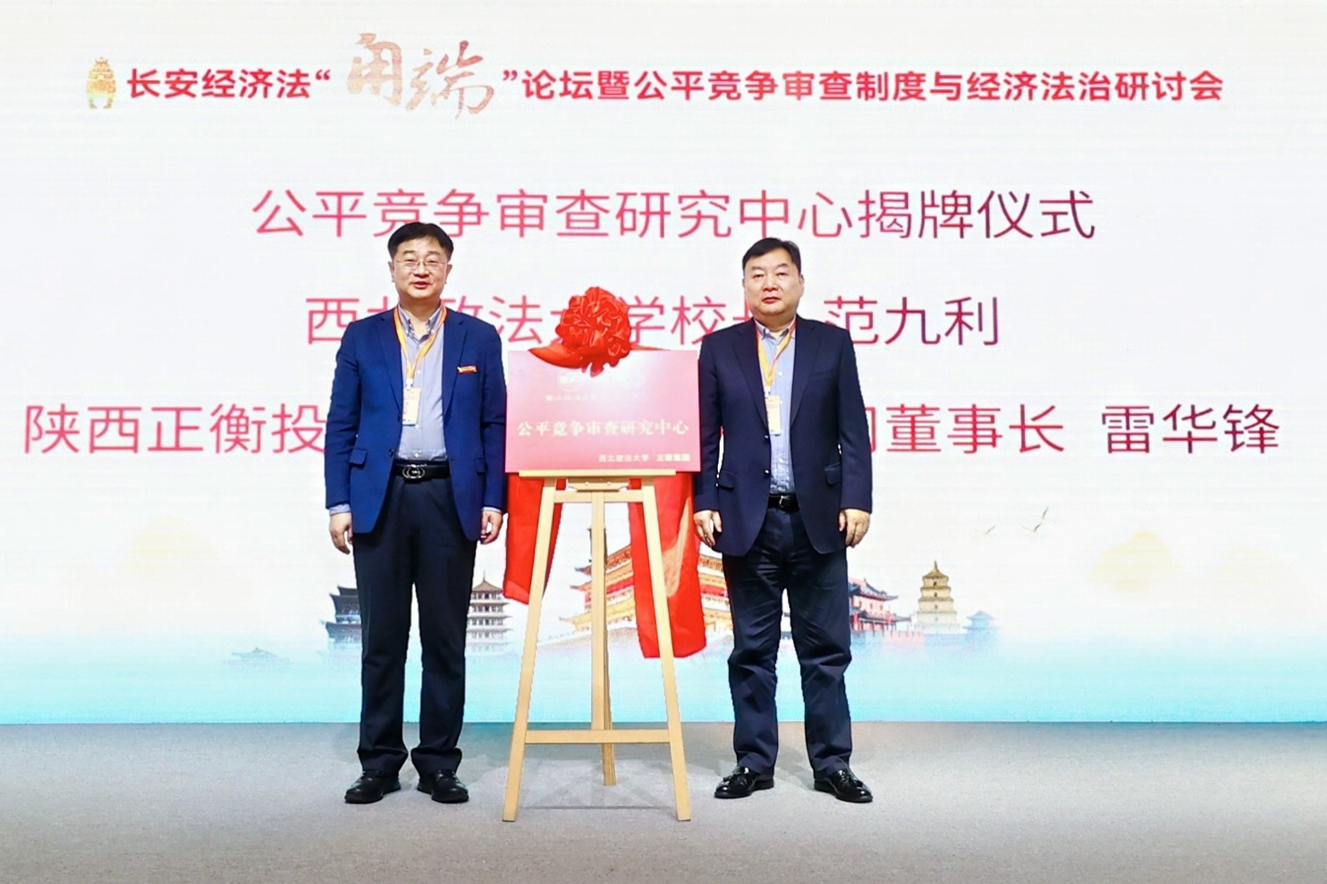 12月21日,第二届长安经济法“甪端”论坛暨公平竞争审查制度与经济法治研讨会在西安召开。论坛由我校、陕西正衡投资控股集团有限公司共同主办,我校经济法学院(知识产权学院)、陕西省法学会市场监管法治研究会、《法律科学》编辑部、正衡市场监管法治研究院、陕西省创新团队“统一大市场下市场监管法治体系研究团队”联合承办。陕西省法学会党组书记、专职副会长王凯华,我校校长范九利,《法律科学》编辑部主编杨建军,正衡集团董事长雷华锋出席。