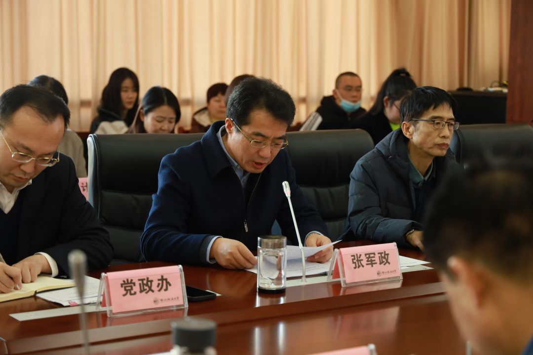 张军政代表学校对专家组来校评估表示欢迎,并从加强数字底座建设、充实数字内容建设、完善数字场景建设、提升数字安防水平、提升保障能力等五个方面,汇报了我校数字校园建设情况。他表示,学校高度重视数字校园建设,近年来持续推进教育信息化2.0行动计划,积极推动信息技术与教育教学深度融合,不断提升信息化建设与应用水平,运用“数字化思维”推进高校治理体系和治理能力现代化。同时,学校也将以此次评估工作为契机,继续探索数字校园下的教学、行政工作模式改革,不断提高信息化建设标准,在教育数字化转型中做出亮点,做出成绩。