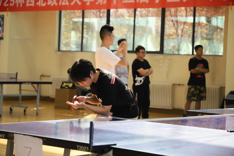 在男子单打决赛中,来自刑事法学院2017级的王肖斌与来自民商法学院2018级的姜润生进入冠军争夺。前阶段双方势均力敌,攻守均较为谨慎。后阶段比赛进入白热化,双方展开强烈攻势。接发球抢攻、下旋球、吊边角、提拉、大力扣杀、推挡等技术动作异彩纷呈。最终,王肖斌夺得男子单打冠军。