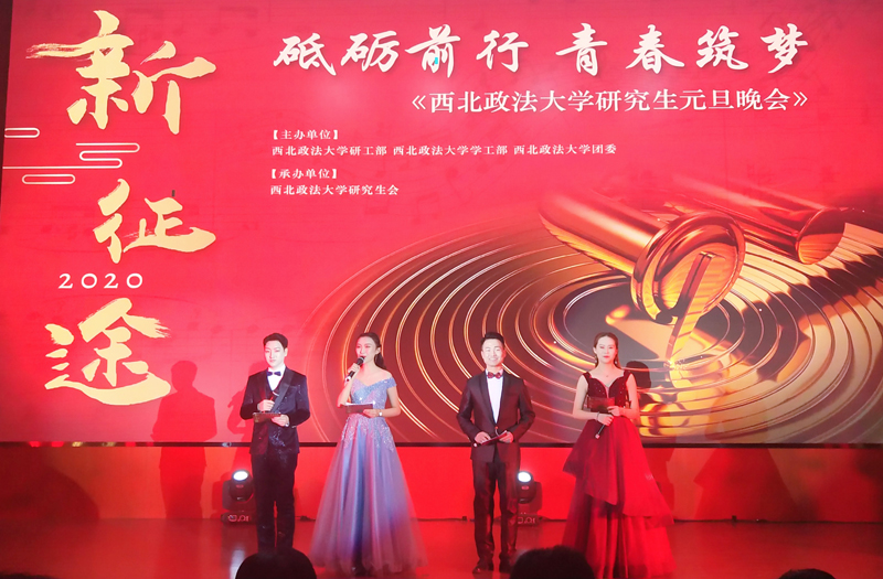 20191230日晚,我校“新征途 | 砥砺前行,青春筑梦”研究生元旦晚会在雁塔校区二号教学楼一楼报告厅举行。校长杨宗科,副校长漆思、张军政,学工部、团委、研工部等相关职能部门和各学院负责人及导师代表应邀出席,与研究生们共同欣赏了这场精彩的晚会。