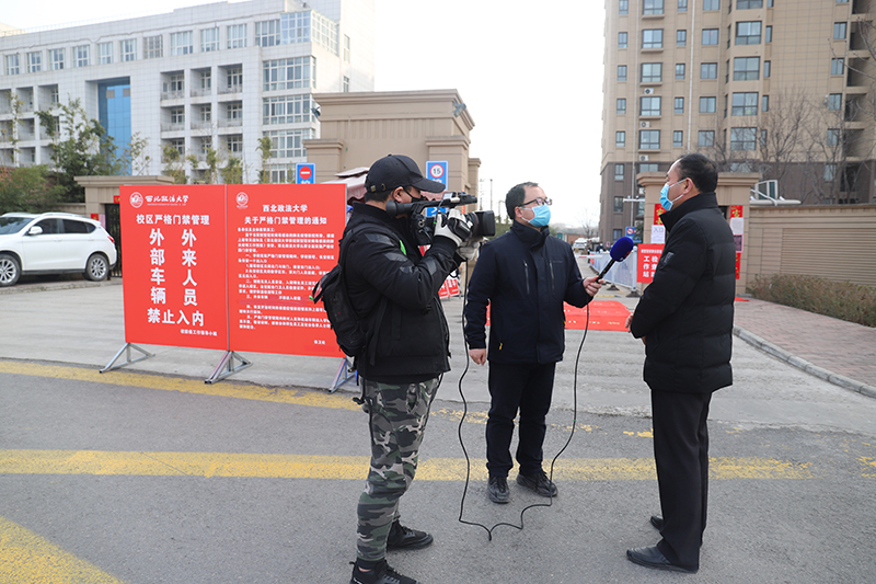 2月8日下午,西安电视台原点直播的记者来到我校长安校区,直播采访疫情防控工作开展情况。