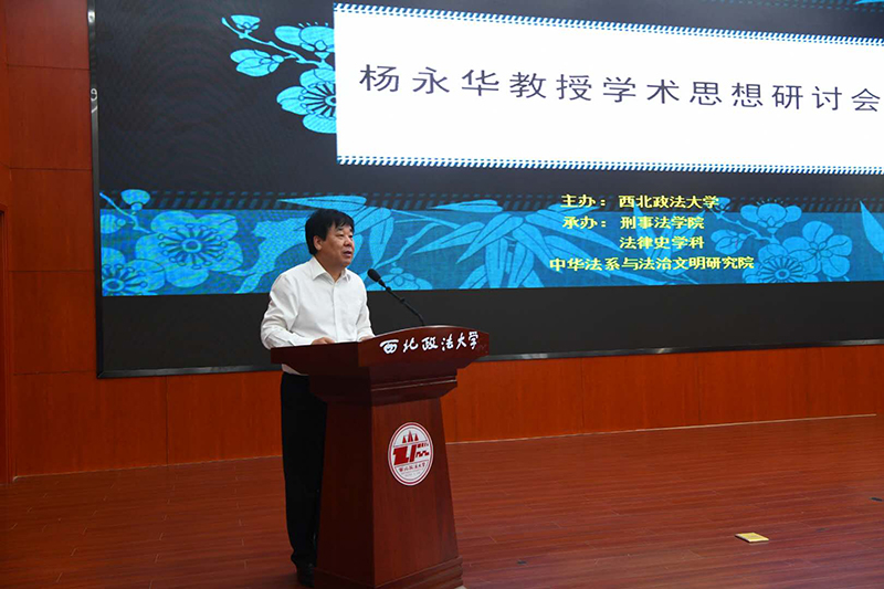 杨宗科在致辞中深情回顾了杨永华教授在四十年中为西北政法大学法律史学科作出的卓越贡献,并勉励全校师生传承杨永华教授“堂堂正正做人,圆圆满满治学”的精神,为学术研究、为学校发展作出新的更大的贡献。