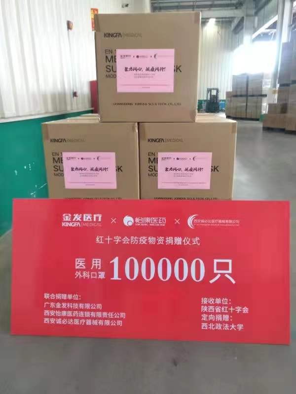1月3日,广东金发科技有限公司联合西安怡康医药连锁有限责任公司及西安诚必达医疗器械有限公司,通过陕西省红十字会向学校捐赠了10万只医用外科口罩,积极助力我校疫情防控工作。