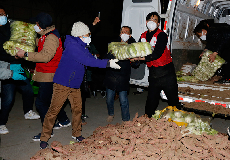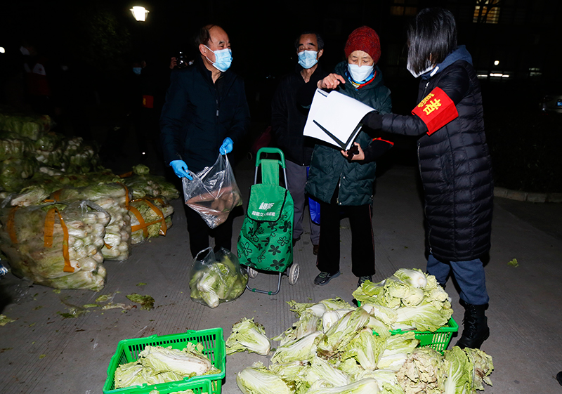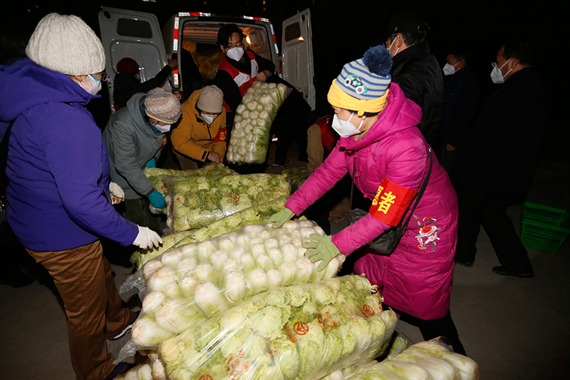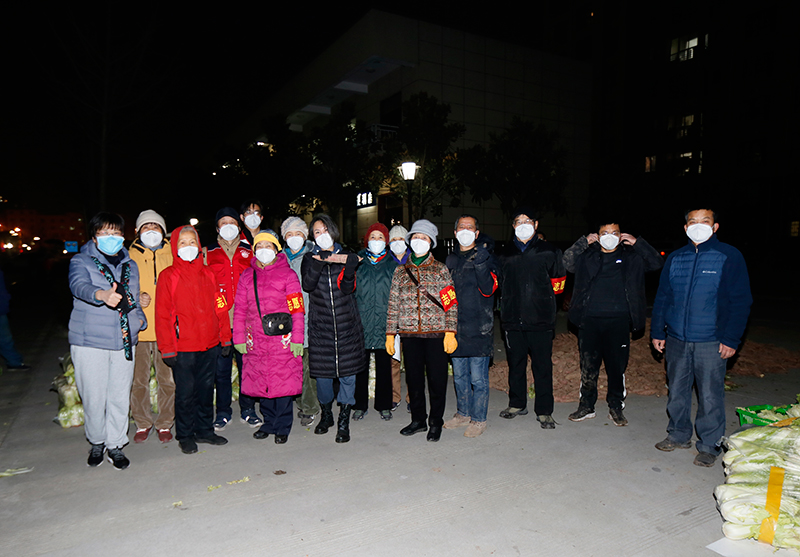 2022年1月3日,长安校区疫情防控指挥部积极协调离退处、后勤处,联系车辆人员,后勤服务人员不辞辛苦,马不停蹄,将爱心菜从周至县冷库运至长安校区教师公寓。晚8点许,离退处陈永康、王星泽、王林钢,组织20多名退休、学生志愿者,不惧严寒,齐心协力,带头一起卸货、分发,历时4小时,把爱心蔬菜现场发送给在此居住的300多名离退休老同志及家属、在职教职工,完成了这次爱心接力行动,也达成了杨雪、朱峰夫妇和宫烨文老师支援抗疫的心愿。他们的无偿捐助感动了大家,离退休同志及家属等纷纷通过微信为他们的爱心点赞,并送去自己的问候。