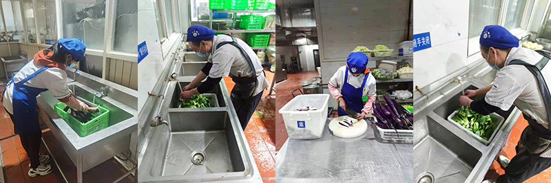 据后勤保障处有关人员介绍,“现在所有的餐饮人员都住宿在学校。他们每天早上5点起来接菜、收拾食材、加工制作,忙碌完所有工作要到晚上12点。”