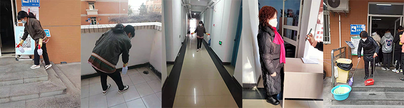 宿舍实行封闭管理后,宿舍管理员肩上的担子也随之增加。每天清晨5点半,宿舍大门准时打开,随后进行清扫和消杀。宿舍管理员认真检查着自己负责的区域,地面、墙角、过道、楼梯、扶手、阳台、卫生间,每日四次消杀,不漏一个死角。