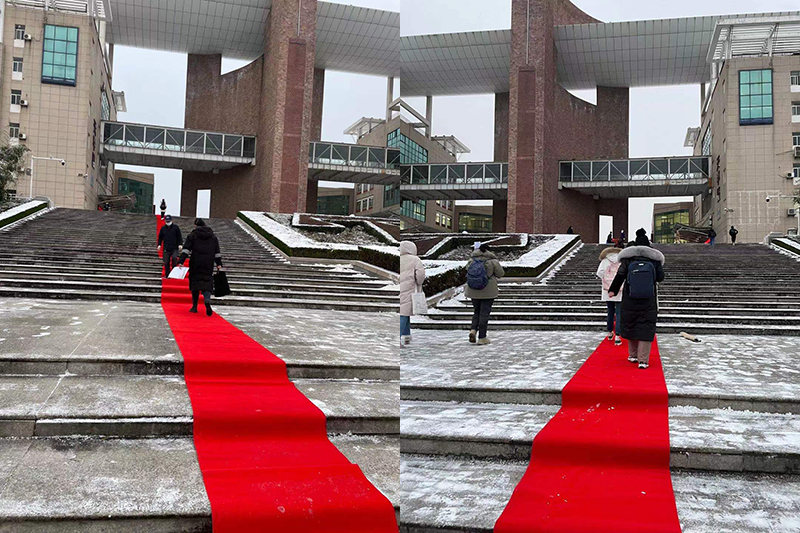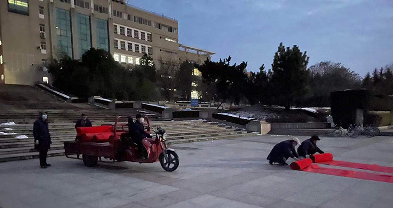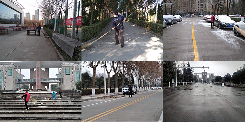 由于疫情原因,后勤保障处部分保洁人员不能返岗,留校保洁人员的工作更为繁重。夜里突降的大雪,给校园清洁工作带来了更大压力。为确保考试安全进行,后勤保障处连夜部署,动员全处员工清扫考场所处天平楼一带的积雪,确保开考前道路积雪全部清扫完毕。从清晨5点开始,他们与风雪对抗,为考生铺就一条通往希望的道路。