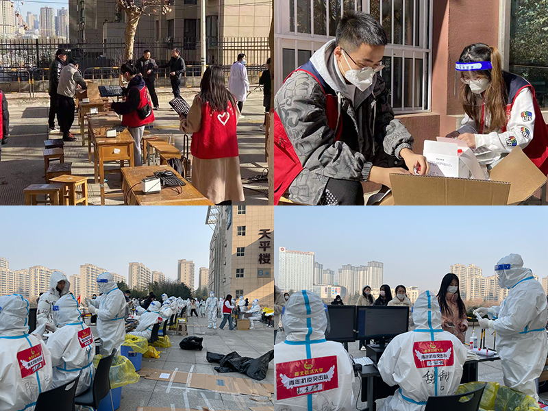 组织815名青年志愿者协助医护人员进行11轮次全员核酸检测和研考师生核酸检测,累计服务16万余人次,切实把主动参与疫情防控作为共青团彰显先进性的重要实践载体。在疫情防控一线设置团员“先锋岗”,树立青春榜样,增强责任担当,努力成为让广大青年师生能够随时看得见、找得到团组织。