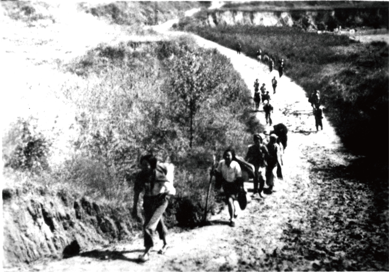 ▲全国各地爱国青年经历千辛万苦奔向延安