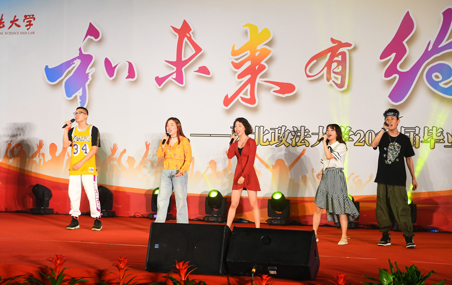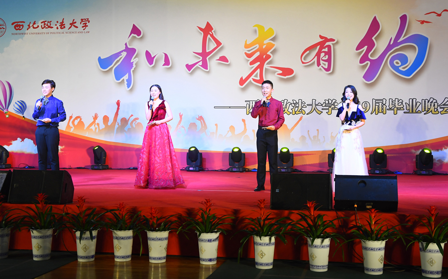 “我们今天是桃李芬芳,明天是社会的栋梁”“法治信仰在这里扎根,法治中国要我们继续努力……”伴随着熟悉的旋律,全场师生齐声高唱《毕业歌》与《西北政法大学校歌》。西法大的点点滴滴和对这所大学的热爱,汇聚成了现场同学们心头的阵阵暖流,晚会也在“毕业快乐”的祝福声中圆满落下帷幕。
