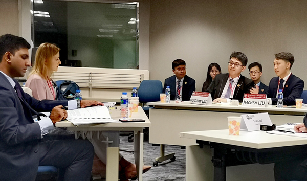 我校代表队由国际法学院牵头,学院副教授师怡担任领队,为比赛提供指导教师的还有国际法学院院长刘亚军教授、马海涛副教授、张望平副教授和刘学文副教授。国际法学院向全校甄选优秀学生组成本届代表队,参赛队员由刘家琛、刘怀轩、王嘉文、倪慧、姚嘉源和陈国龙六名学生组成。在长达六个月紧张准备中,我校分别向组委会递交了仲裁申请书和答辩书,并进行了多次赛前模拟。比赛阶段,我校分别迎战美国Tulane大学、德国Jena大学、印度Nalsar大学和缅甸Yangon大学。我校派出的两位上场队员刘家琛、刘怀轩以流利的英语口语、清晰的辩论思路、扎实的法律功底赢得了仲裁庭的高度评价,彰显了我校学子的风采和涉外法律人才的培养效果。