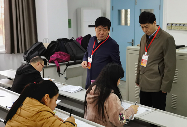 我校2019年博士研究生招生笔试于3月30日至31日在雁塔校区3号教学楼进行。考试期间,杨宗科校长对考场考务、安保及后勤保障等情况等进行了视察,并对今年博士研究生招生工作做出了重要指示,要求研究生院严格程序、确保公平、统筹兼顾做好完成后续的复审录取工作,选拔出优秀的博士生。