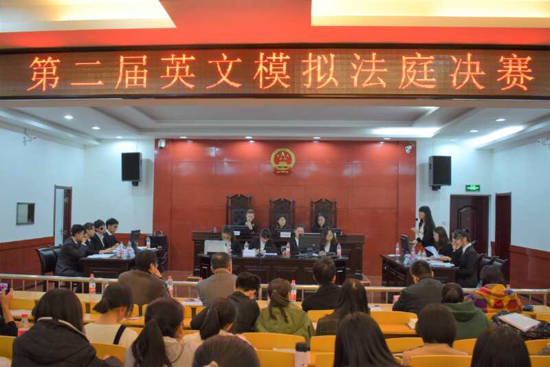 第二届英文模拟法庭是我校首届“法治文化季”系列活动之一。竞赛前后历时3个多月。经过两轮面试,遴选出32名同学组成八支队伍参加竞赛。竞赛包括赛前培训、初赛、季军赛和决赛等环节,由法律书状和法庭辩论两部分构成,全程以英文作为工作语言。来自西北大学和我校的专家承担了赛前培训和法庭辩论裁判任务。