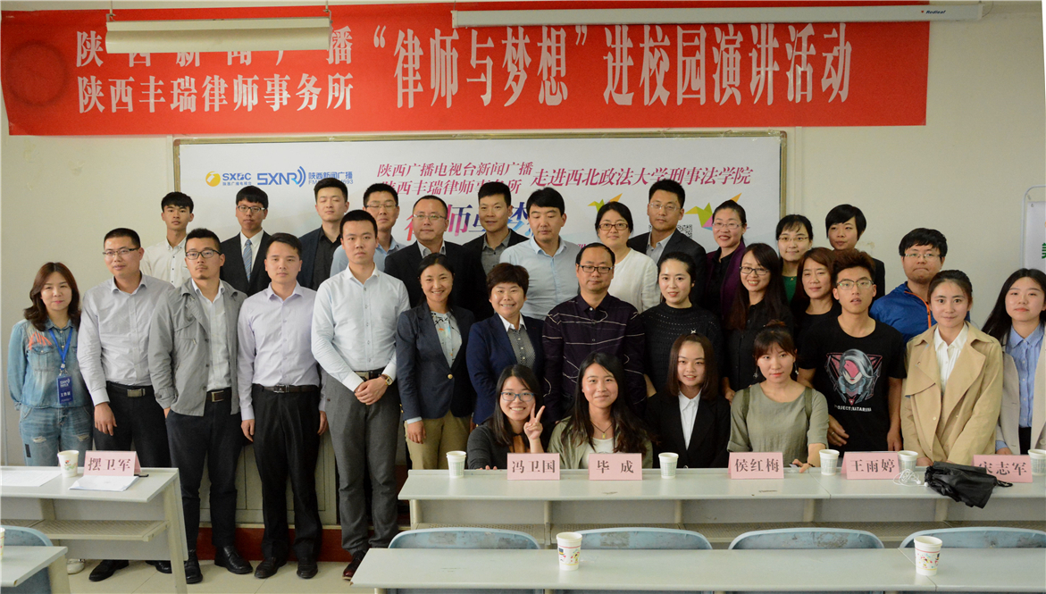 5月4日,由陕西丰瑞律师事务所、陕西新闻广播与我校联合主办的“律师与梦想”进校园演讲活动于长安校区格物楼401教室成功举行。陕西新闻广播副总监摆卫军,丰瑞律师事务所监事会主席张冰及其青年律师团队,我校刑事法学院党委书记毕成,院长冯卫国,副院长侯红梅、宋志军等出席了此次活动。活动由陕西新闻广播《说法时间》节目主持人凌霄主持。