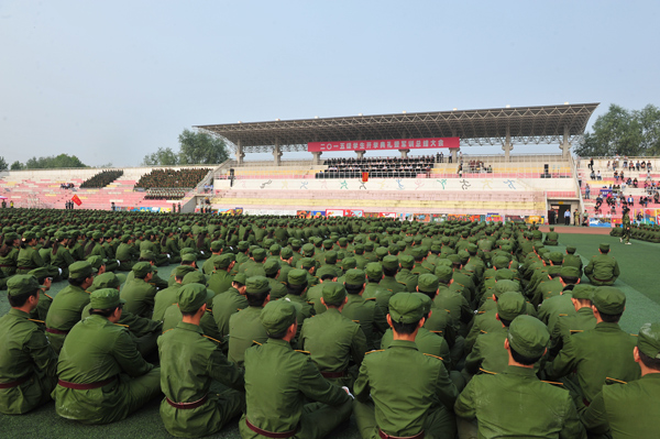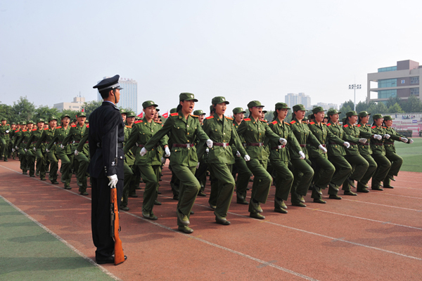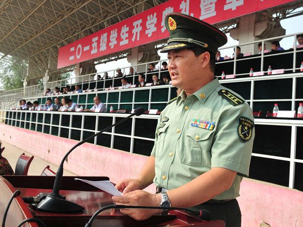 校党委副书记、军训旅政委赵健对本次军训作总结讲话。他说,军训中全体承训教官以自觉饱满的政治热情、严谨细致的工作作风、一往无前的军人品质影响并带动着同学们,使同学们在潜移默化中受到了良好的教育。教学、管理、后勤等有关部门、全体参训老师齐心协力,体现出良好的大局意识、团结意识、奉献意识和创新意识;训练期间,校党政领导和学院教师们与教官们密切配合,把严格的管理同深入细致的思想政治工作融为一体,为军训的圆满完成奠定了良好的基础,为同学们即将开始的大学生活增添了持久的动力。