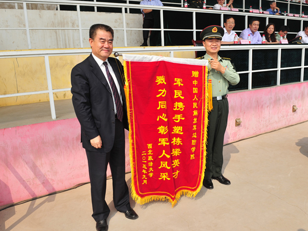 大会最后,校党委书记宋觉向中国人民解放军边防学院赠送锦旗,表达了对中国人民解放军边防学院全体官兵的感谢,并祝愿两校友谊长存。