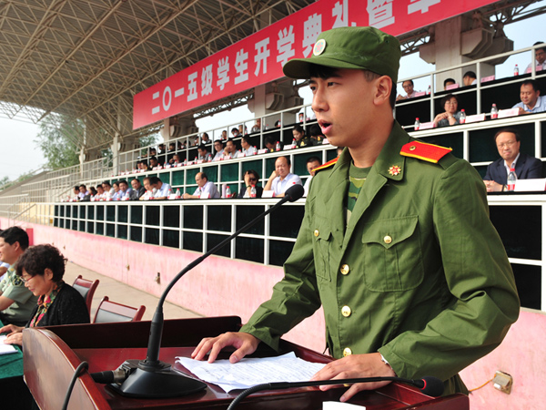 时维九月,秋高气爽,鸿雁南飞。西北政法大学2015级新生开学典礼暨军训总结大会于9月20日隆重举行。校党政领导宋觉、贾宇、赵健、罗新远、宣力、郭捷、王瀚、刘鹏伟、李玉朝,中国人民解放军边防学院副院长杨阳大校,边防学院学生军训教研室主任刘法语上校,边防学院炮兵教研室副主任、军训旅旅长夏广东大校等领导莅临了本次大会。校长助理、各学院党委书记、各学院院长、学校各职能部门负责人、教师代表及离退休教职工代表参加了此次大会。大会由郭捷副校长主持,军训汇报表演部分由军训旅参谋长王指财少校主持。