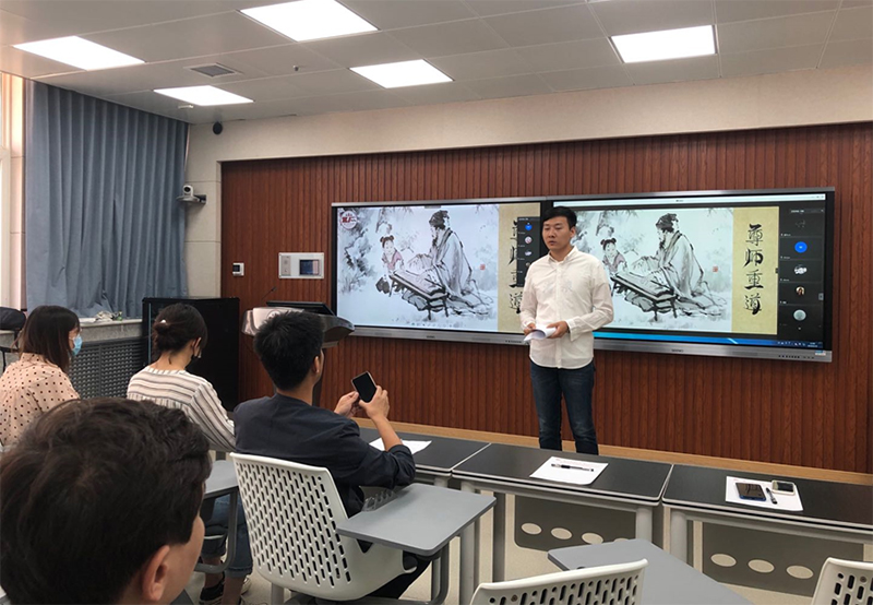 为加强留学生对中国文化的了解, 9月10日教师节中午,国际教育学院面向全体留学生举办了以“尊师重道”为主题的中国国情教育活动。活动采取线上线下相结合方式举行,在校留学生现场参与,在国外留学生通过腾讯会议线上参加。活动由国际教育学院副院长黄远江主持。