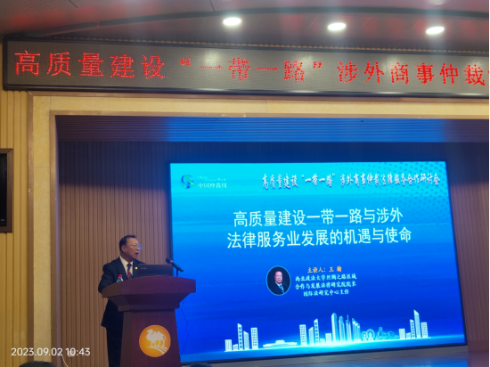 2023年9月2日,高质量建设“一带一路”涉外商事仲裁法律服务合作研讨会在兰州成功举办。本次研讨会由中国国际经济贸易仲裁委员会丝绸之路仲裁中心(简称“贸仲丝路中心”)和甘肃省律师协会主办的贸仲仲裁周活动,由陕西省律师协会、宁夏律师协会、青海省律师协会、新疆维吾尔自治区律师协会和西藏自治区律师协会协办,兰州市律师协会、甘肃省律协直属分会承办,由中国国际经济贸易仲裁委员会(简称“贸仲”)、中华全国律师协会和甘肃省司法厅指导举办。开幕式由贸仲丝绸之路仲裁中心秘书长助理蒋红梅主持,贸仲仲裁院副院长兼贸仲丝路中心秘书长谷岩,中华全国律师协会副会长、陕西省律师协会会长韩永安,甘肃省司法厅二级巡视员王永平出席研讨会并致辞。