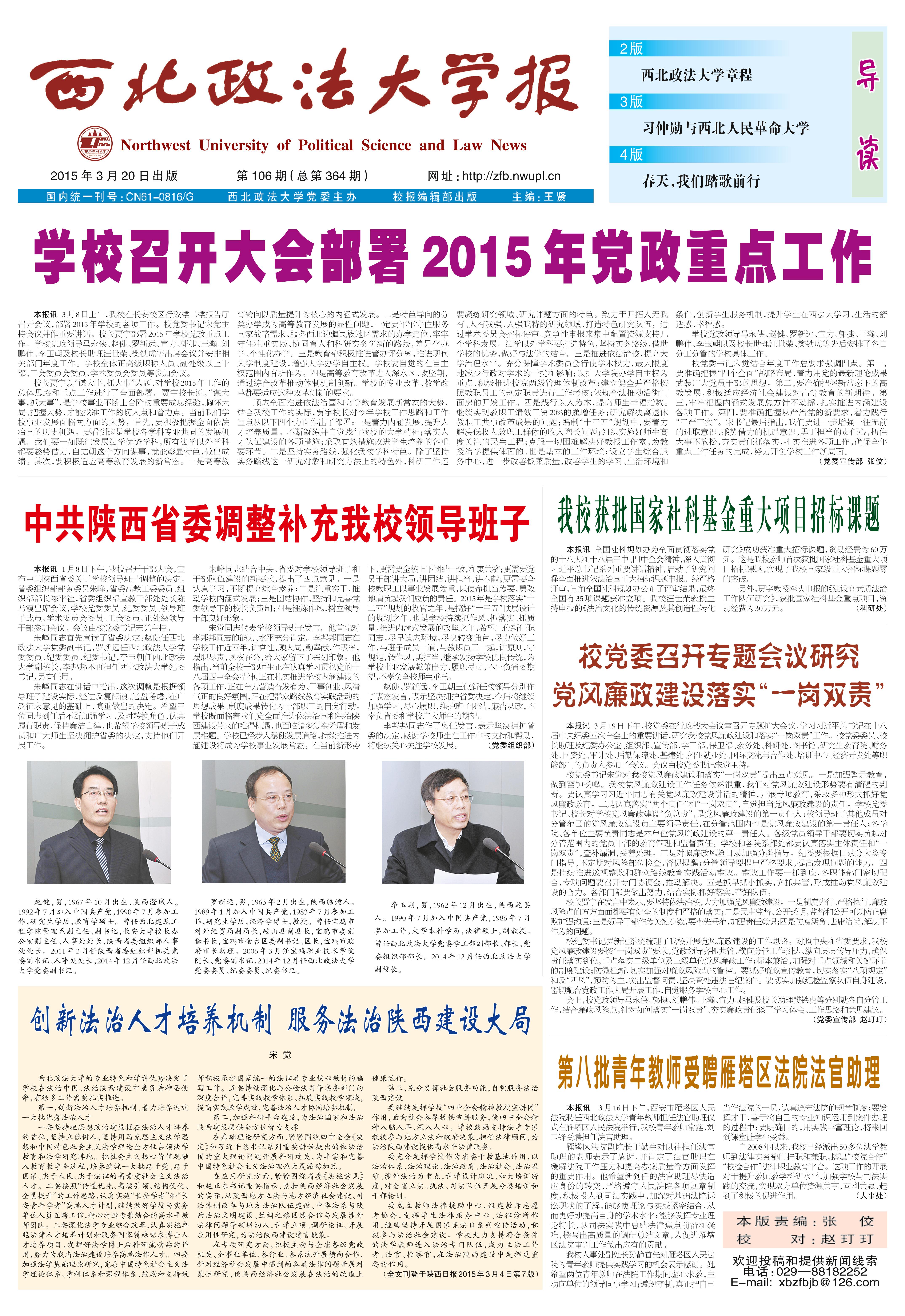《西北政法大学报》第106期