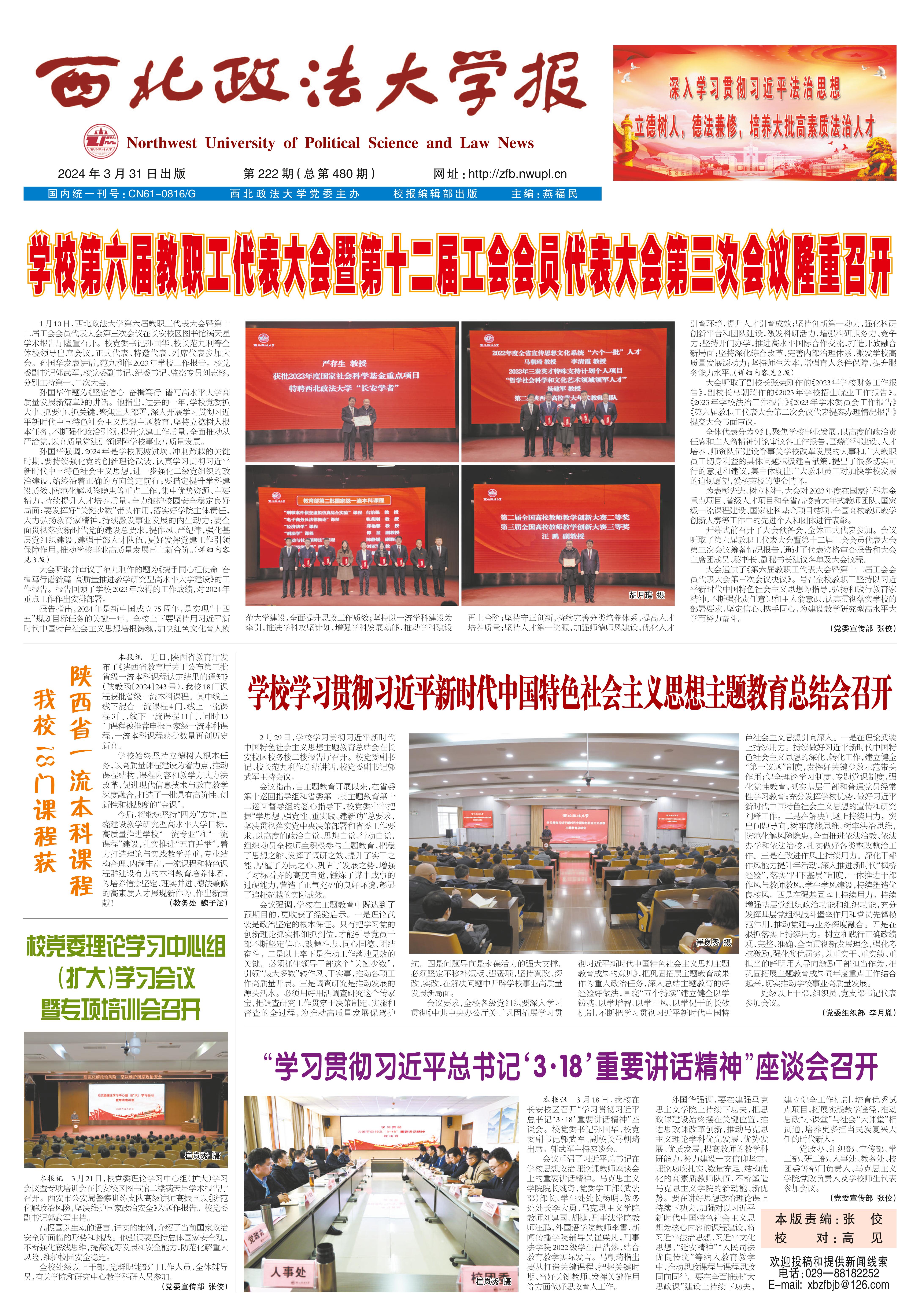 《西北政法大学报》第222期